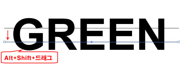 선 툴을 선택하고 Shift를 누른 채 문구의
