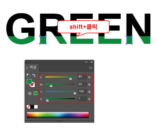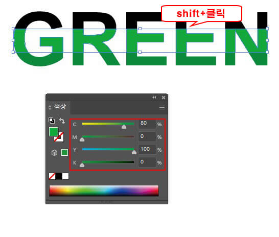 색상 패널에서 녹색(C:80,M:0,Y:100,K:0)으로