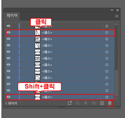 처음과 끝 사이에 있는 레이어가 모두 선택됩니다.